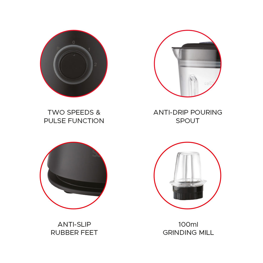 LARGE JUG CAPACITY: The blender jug boasts a generous capacity, allowing you to prepare large batches of your favourite recipes in one go. Whether you're making refreshing drinks for the whole family or blending soups for a crowd, this appliance has you covered.