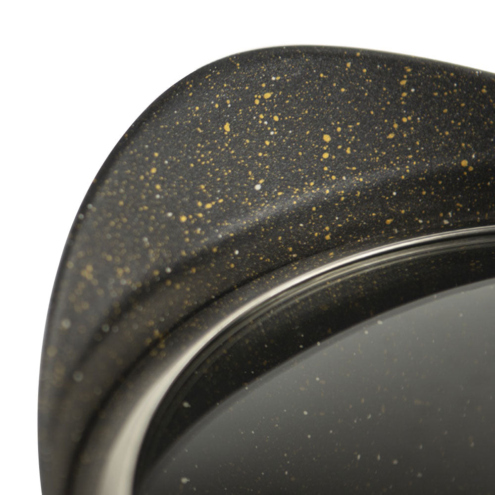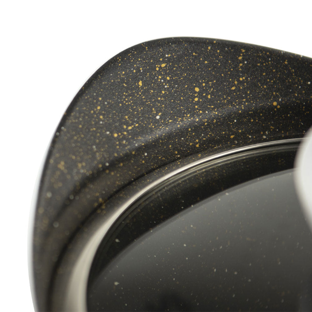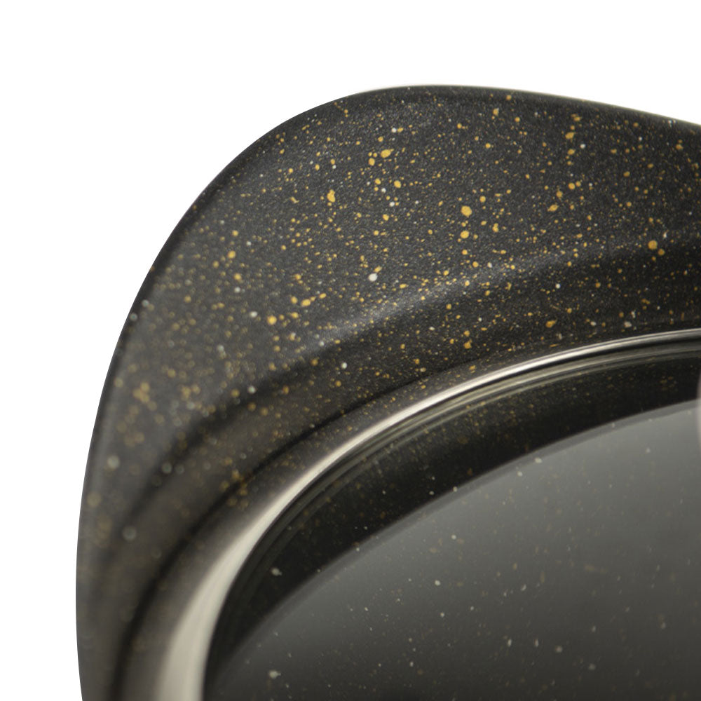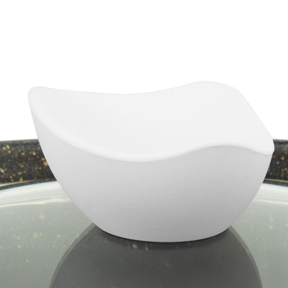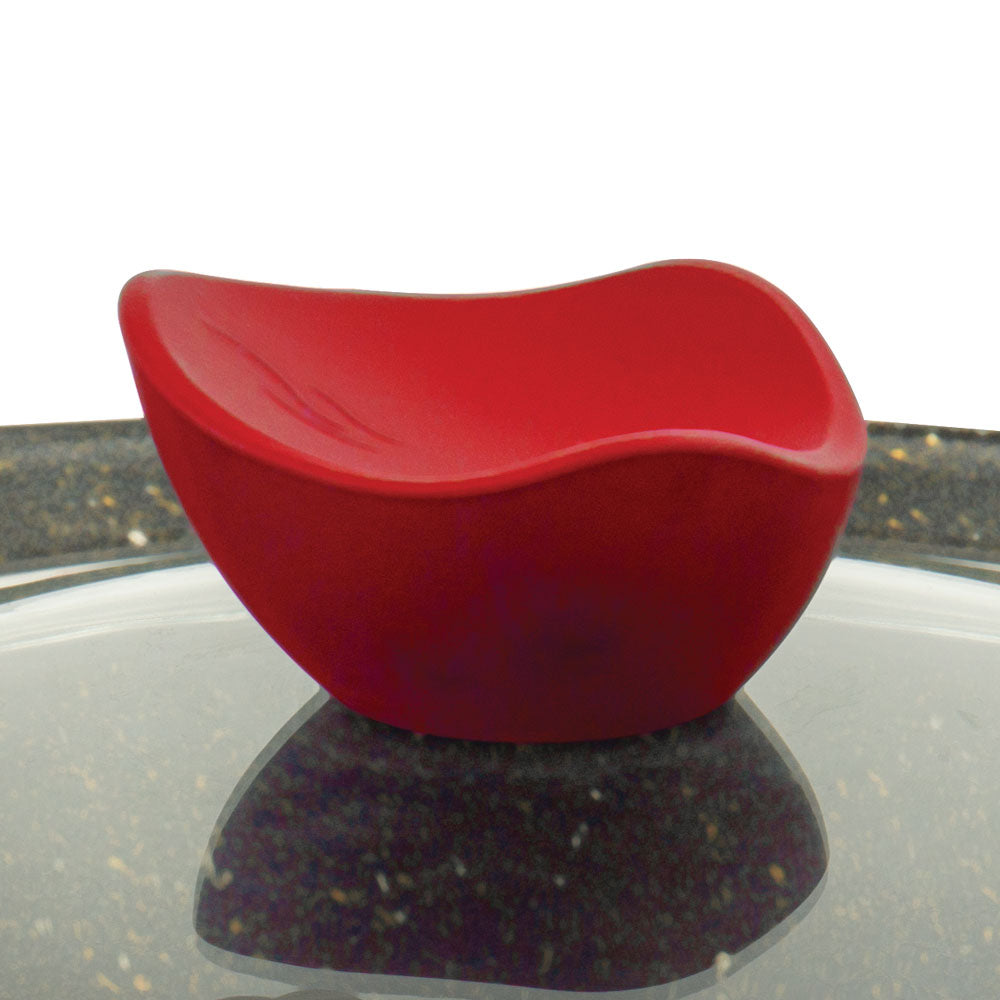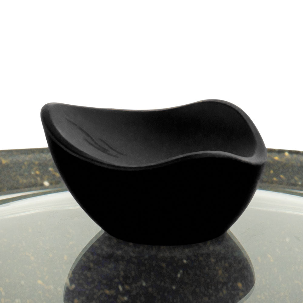 CONSTRUCTION: Manufactured from high-quality, die-cast aluminium these contemporary stock pots are coated with a durable speckled marble effect non stick coating to prevent food from sticking or burning and for easy care and maintenance. A practical soft-touch knob on each lid serves as a spoon rest.