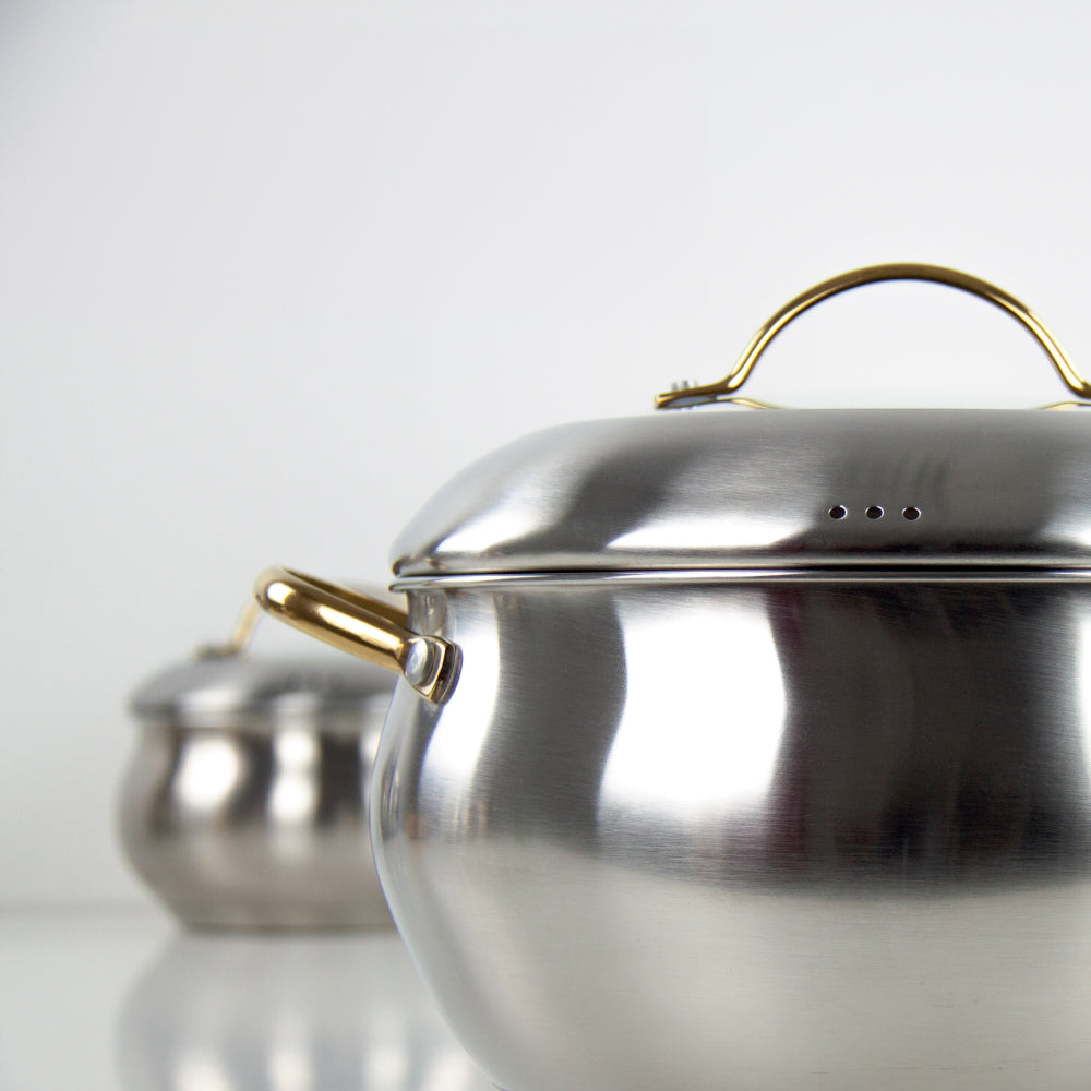 DESIGN: This beautiful, apple-shaped stainless steel cookware set has been crafted from high-quality 18/18 stainless steel to withstand the wear and tear of a busy kitchen.