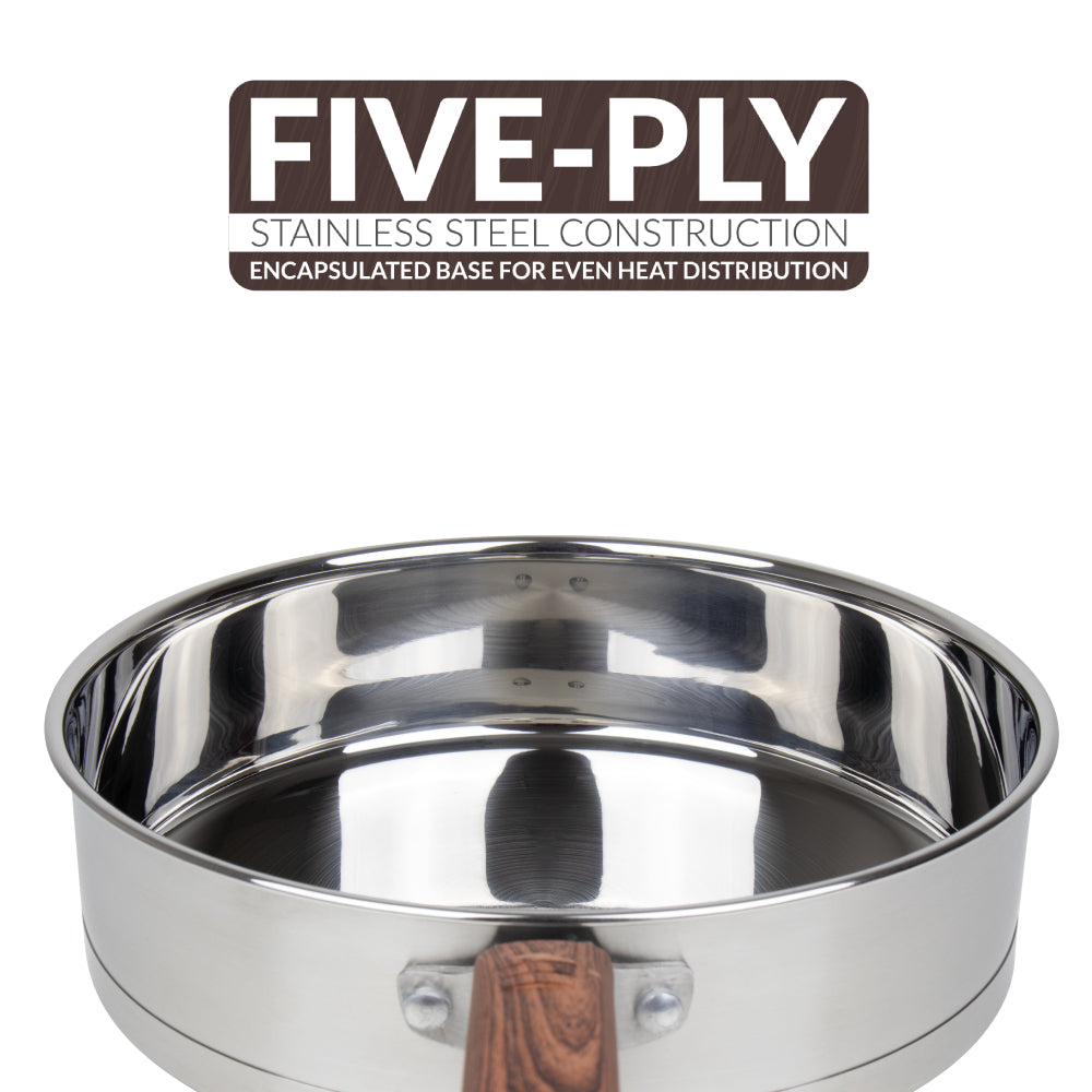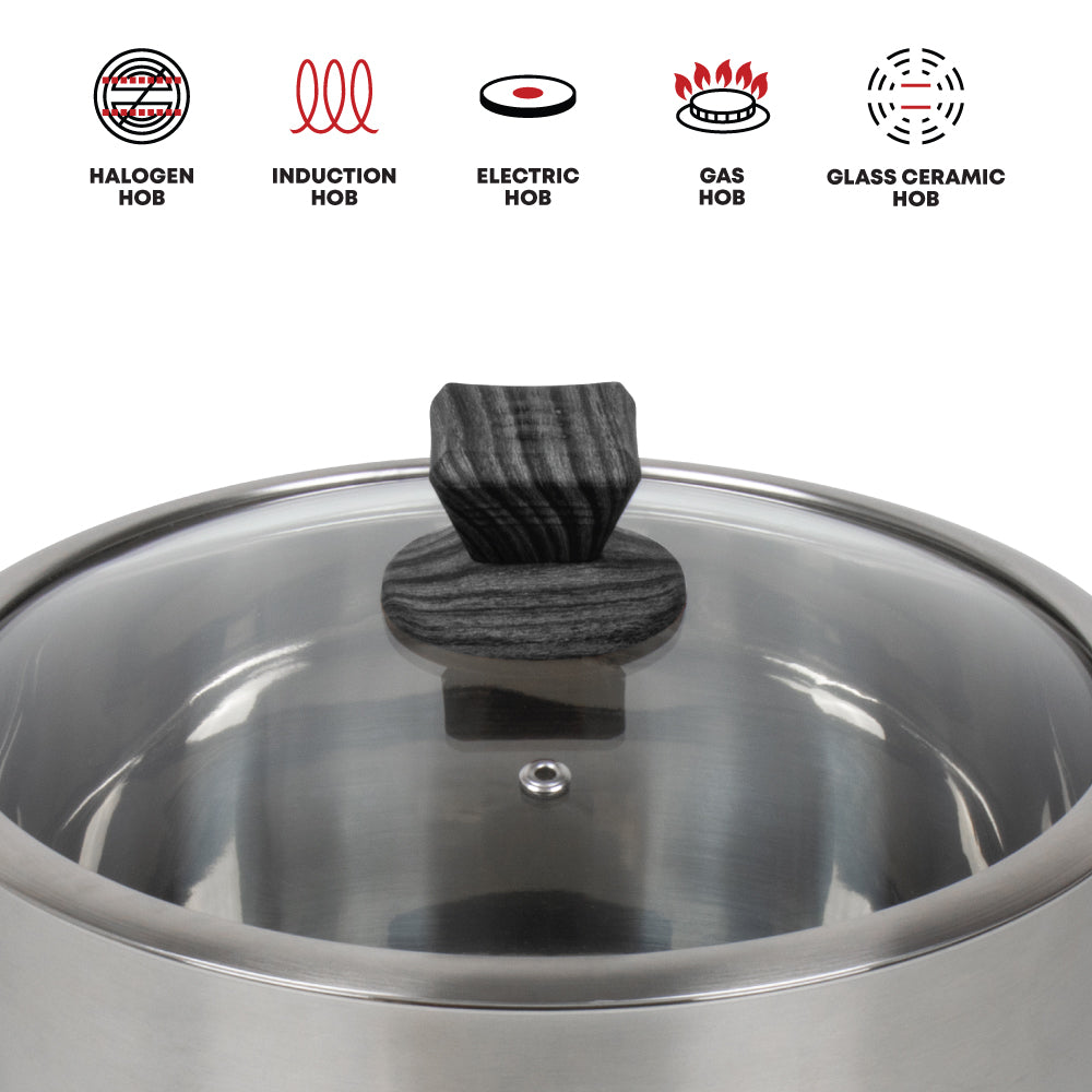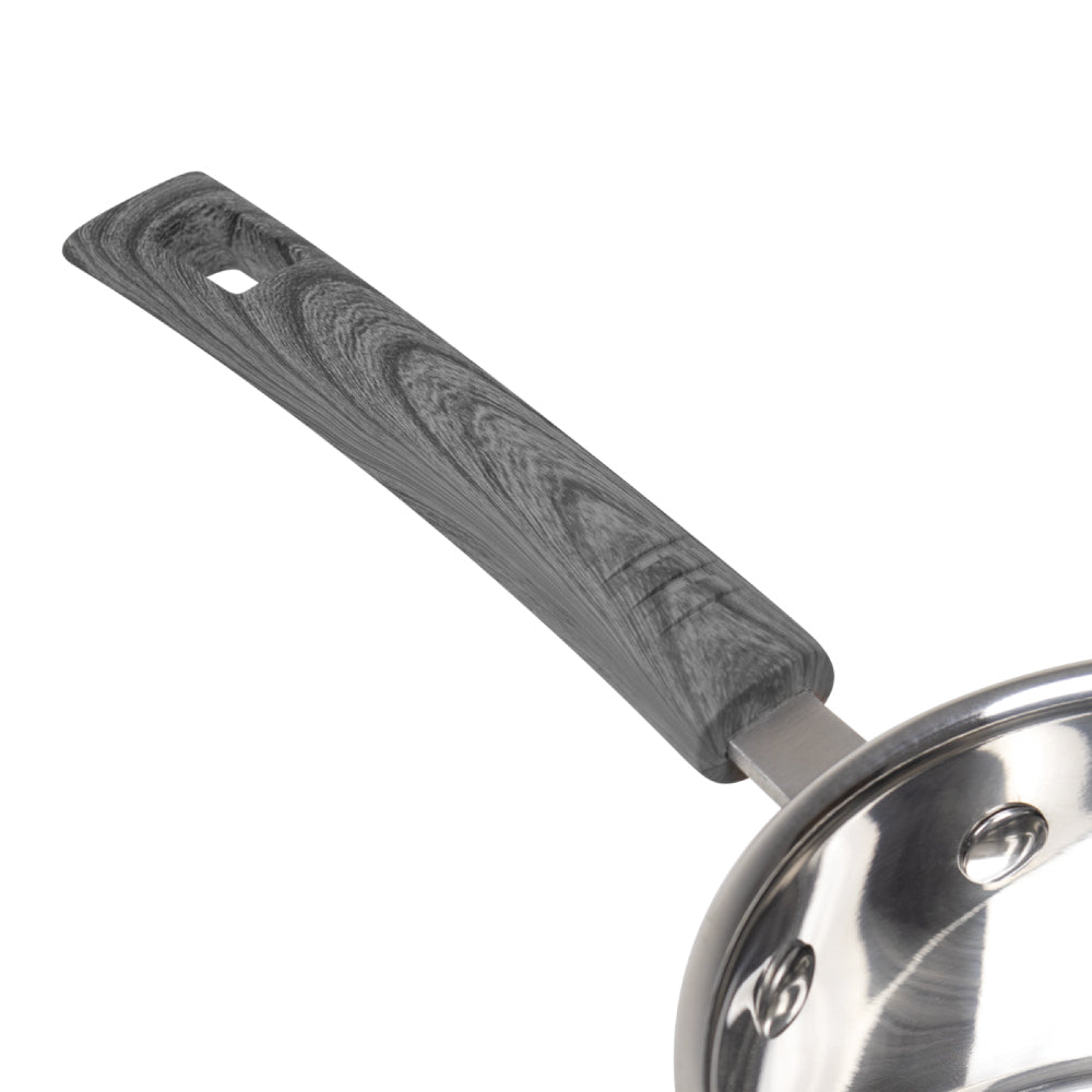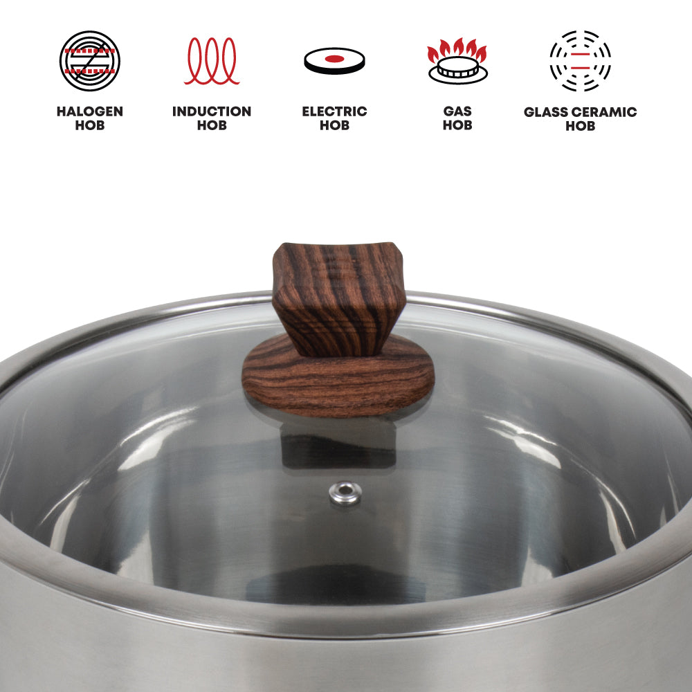 The SQ Professional Stainless Steel Lustro Touch 6pc Cookware Set combines the beauty of the wood effect with the durability of stainless steel to create a hard-wearing but eye-catching addition to your kitchen.