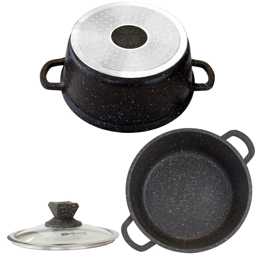 Designed to suit all your needs, the SQ Professional Nea Marbell die-cast 5pc stockpot set has a stock pot for every occasion. Durable and resilient, this non stick stock pot set will ensure you can cook healthily and serve delicious home-cooked meals day after day.